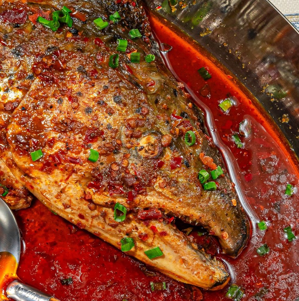 Голова лосося в остром сычуаньском соусе