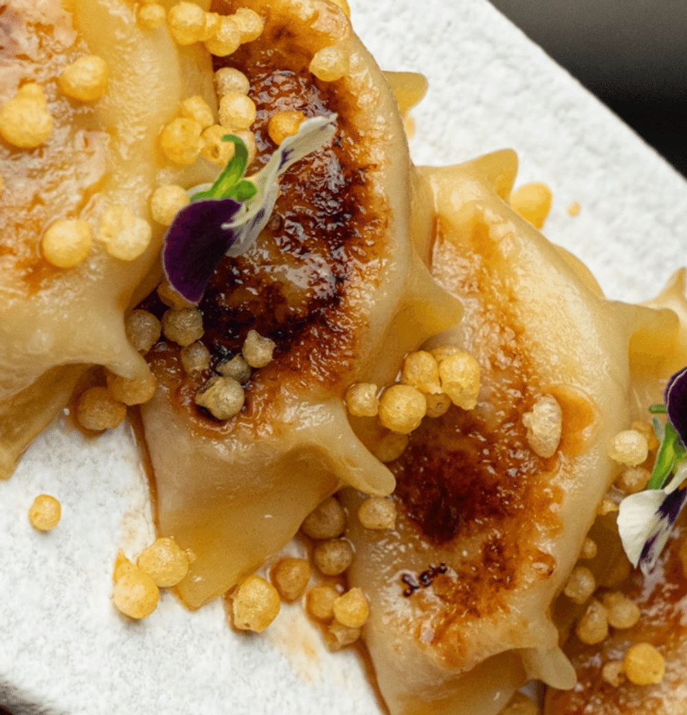 пшеничное тестое, утиное филе, имбирь, капуста кимчи, соус унаги