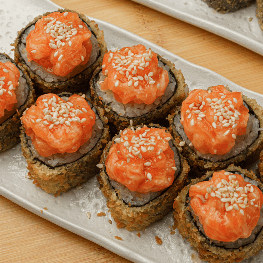 лосось, трюфельный майо, манго, креметте, соус унаги, кунжут