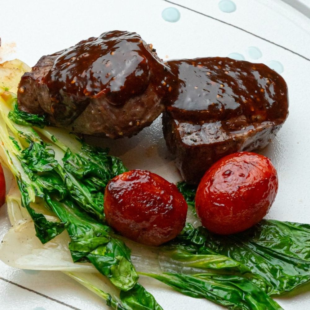 вырезка конины, тимьян, чеснок, пак чой, карамелизированные черри, соус на выбор перечный\ сливочный